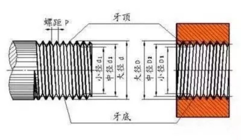 管螺纹主要用来进行管道的连接,其内外螺纹的配合紧密,有直管与锥管两种。公称直径是指所连接的管道直径,显然螺纹大径比公称直径大。